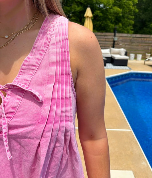 Pink Cowboy Fringe Top & Distressed Denim Shorts