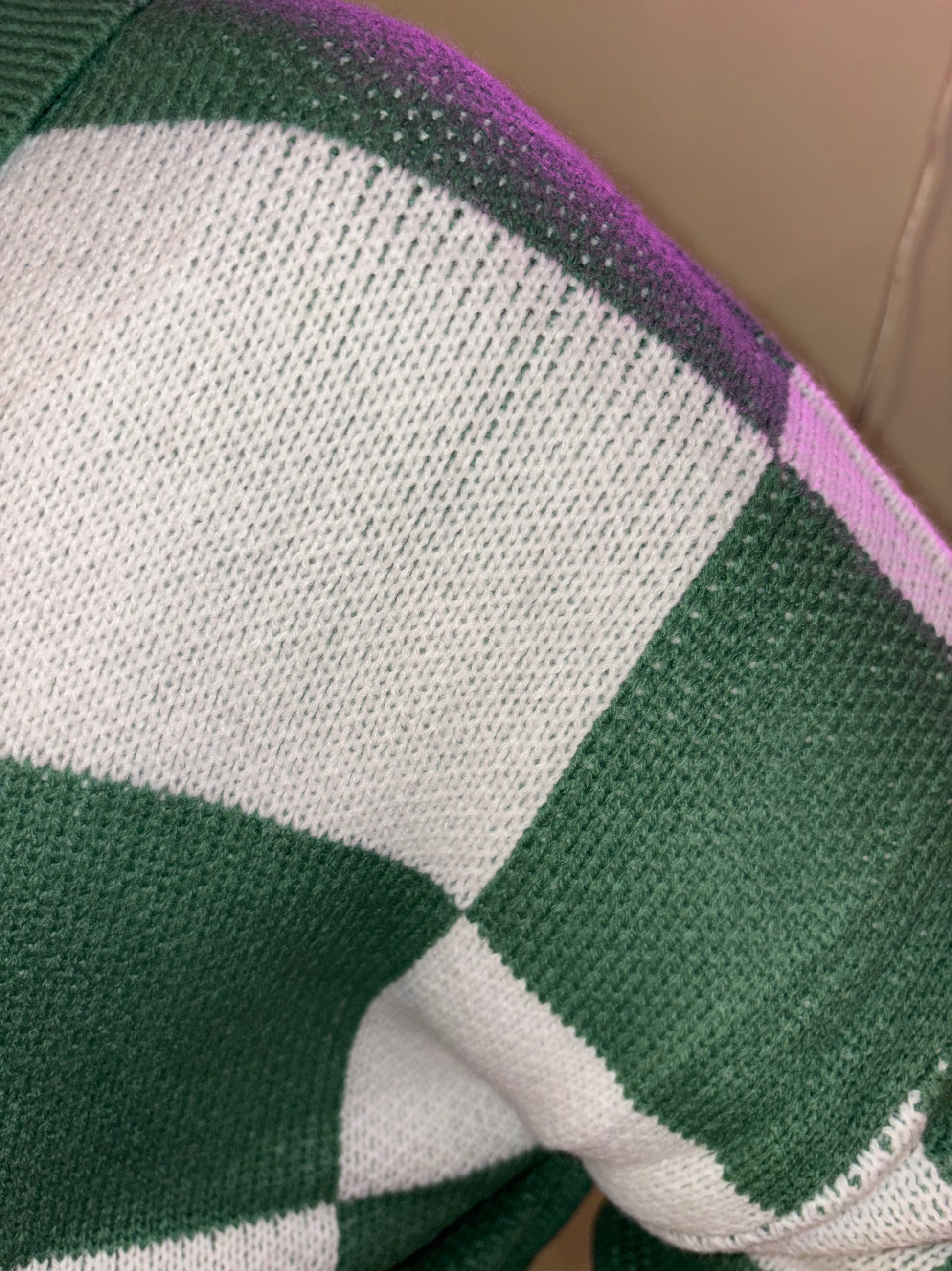 Quarter button pullover; green and white, green buttons